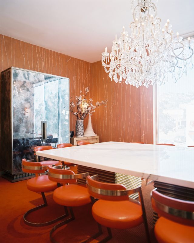 I love this Dining Room designed by M. Design Interiors. From the red King Louis armchairs with a black and white patterned cushion, to the Moroccan accents, such as the chandelier, mirrors and painting. This space has a touch of the unexpected. In addition, the white walls and ceiling allow the accent colors to really pop. What do you love about this Dining Room? You can add as little or as much to your space as you want. Don't follow rules, just do.